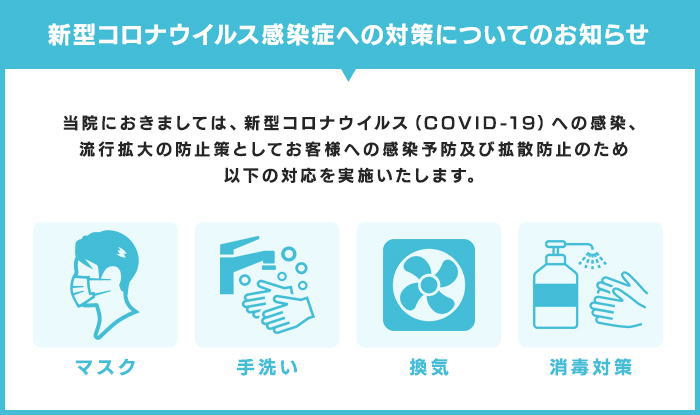 当店におきましては、新型コロナウイルス(COVID-19)への感染、